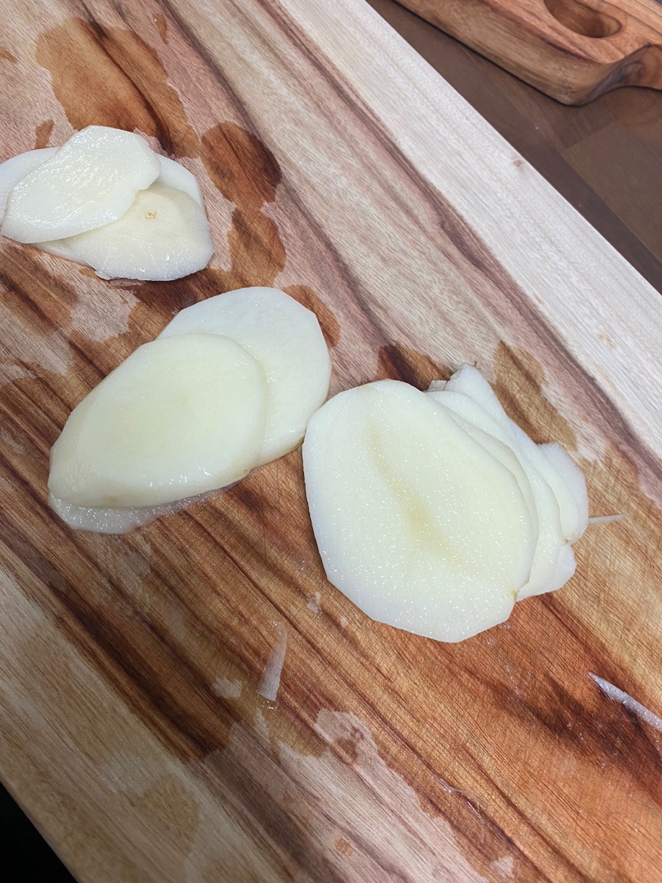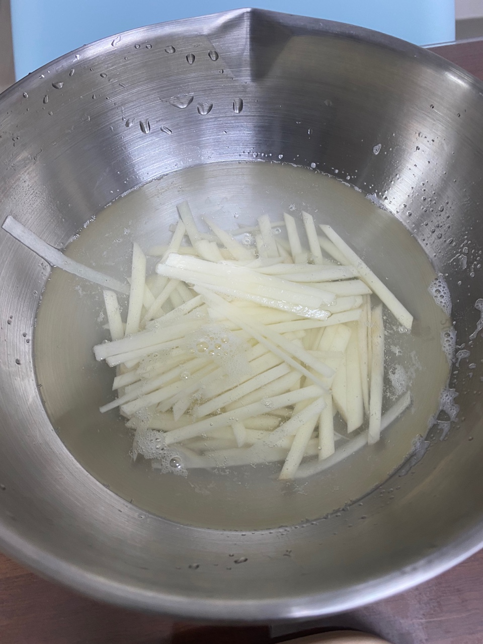 그리고 감자를 물에서 건져내어 물기를 제거해주세요!
