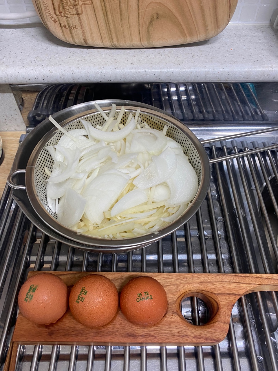 준비물 : 감자. 양파, 식용유, 계란, 치즈